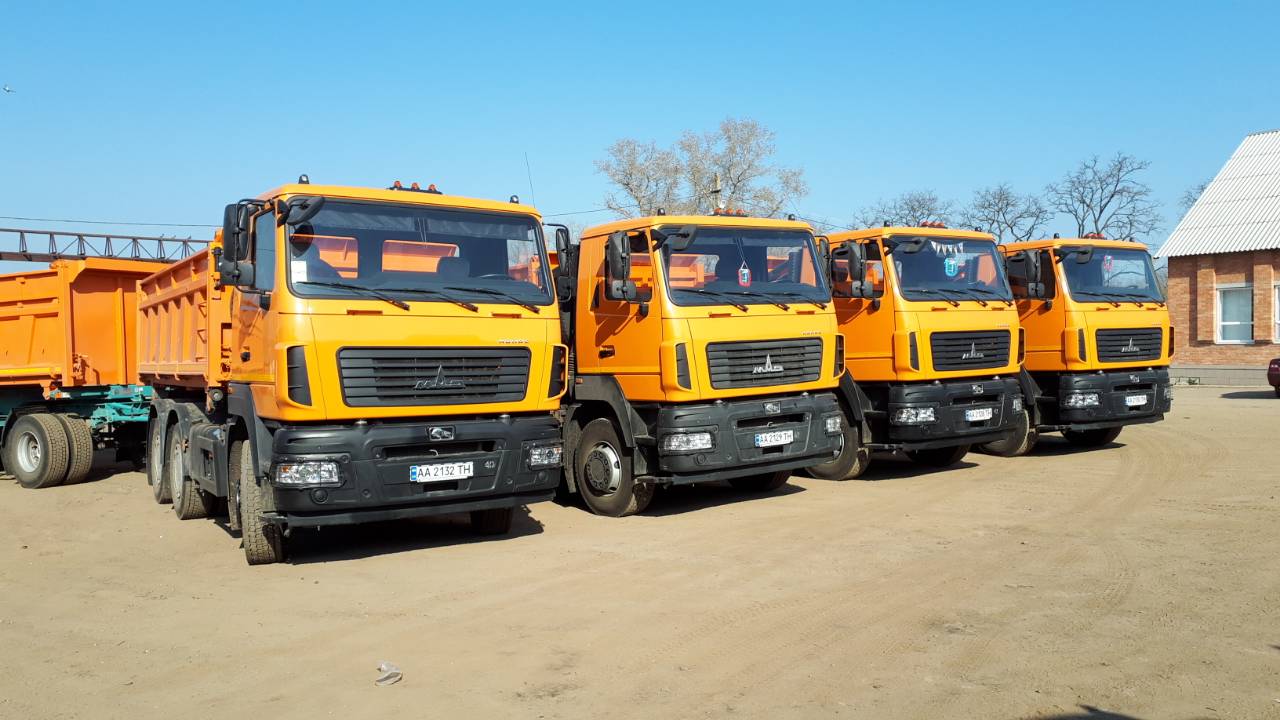 Ні для кого не секрет, що компанія «УкрАгроКом» вже багато років динамічно розвивається, добиваючись високих показників професіоналізму. А в цій справі, не малу роль зіграє тракторна і вантажопідйомна техніка, яка виконує одну з основних функцій на підприємстві. Тому в цьому році наша компанія знову оновила свій автопарк вантажівками марки "MАЗ". Данні автомобілі-самоскиди білоруського виробництва користуються заслуженою довірою водіїв, оскільки не поступаються західним аналогам. Допустима вантажопідйомність моделі складає 20,5 т. Механізм розрахований на швидке збирання врожаю, для чого оснащений 3-скатним звалюванням. Завдяки ньому, при розвантаженні кузов автоматично обертається управо, вліво або відкидається назад. Надіємося, що ці авто, стануть добрими помічниками у нашій справі.